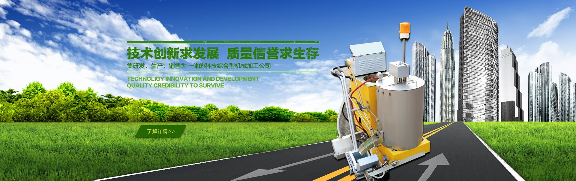 公司自成立以來,秉持市場需求為導向,技術創新為基礎,質量信譽為主的原則,成功開發(fā)出標線施工機械、融雪劑撒布機、道路清掃機等一系列全新的作業機械并獲得多項國家專利?!罢\信立足,創新致遠”的企業理念,分別于2009年、2011年為我公司贏得了“全國質量誠信AAA級品牌企業”和”全國十佳誠信單位”的光榮稱號。2013年,我公司在自主研發(fā)創新產品的道路上邁出了重要的一步,被山西省新技術推廣中心評定為20 14年新技術重點推廣單位。